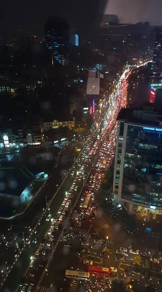 Trời sập tối nhanh, mưa rét khiến tuyến đường về nhà trở nên khó khăn hơn bao giờ hết. Hình ảnh trên đường Tây Sơn.