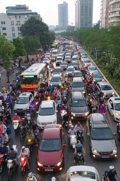 Đường Xã Đàn "thất thủ" vì lượng phương tiện giao thông ùn ứ quá đông.