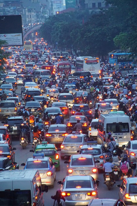 Hầm chui Kim Liên các phương tiện nhích từng chút một giờ tan tầm.
