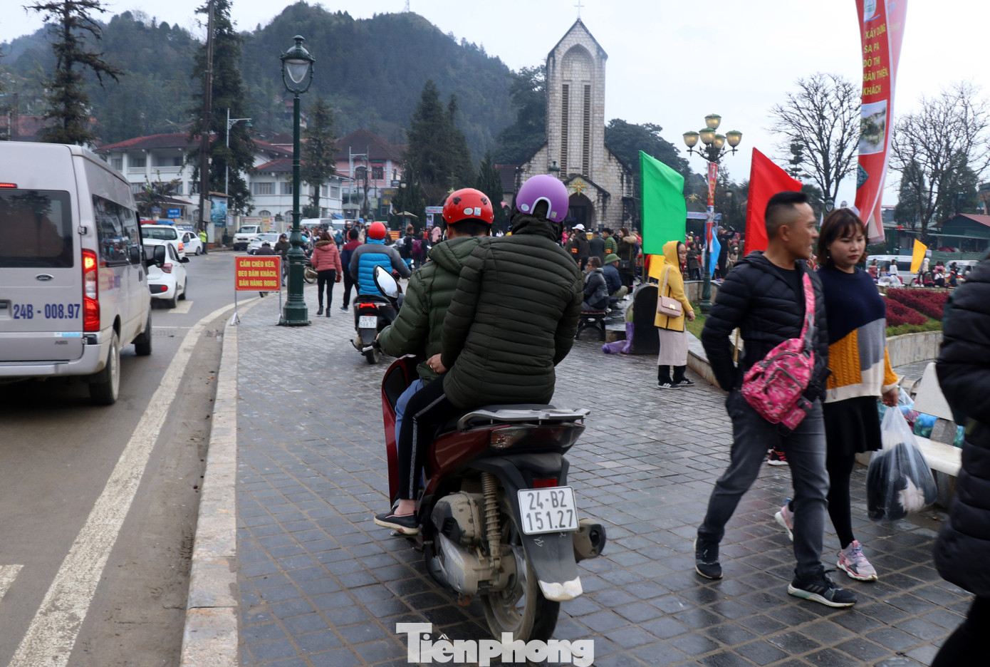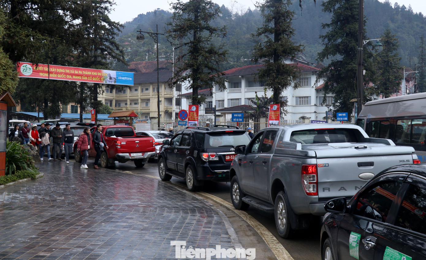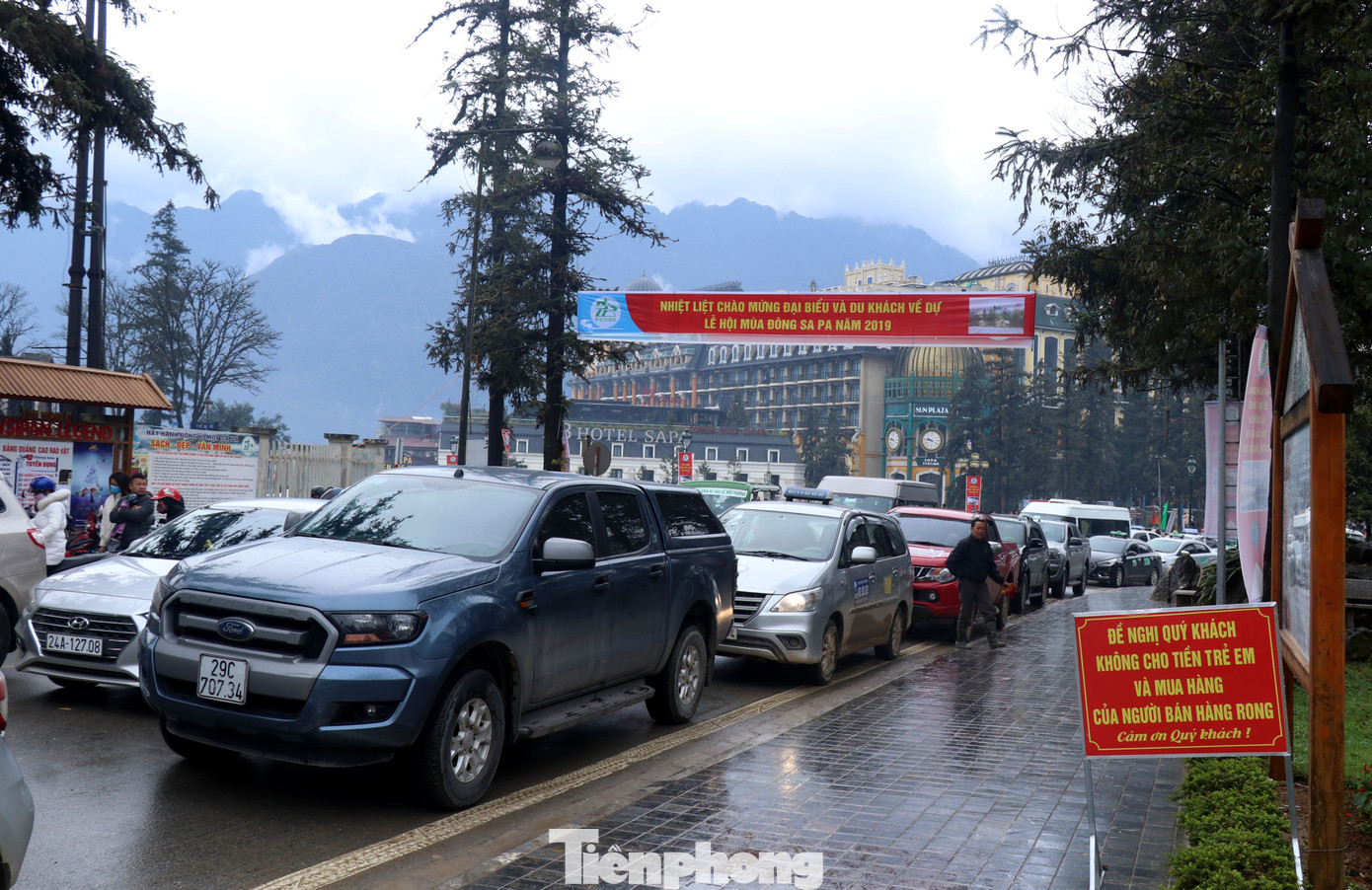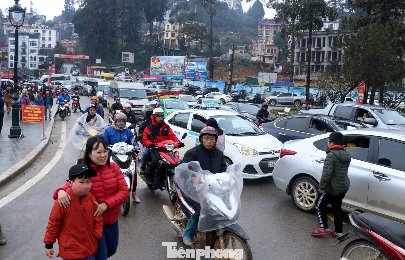 Ghi nhận thực tế của phóng viên, vào giờ cao điểm, tại các cung đường Fansipan, đường Cầu Mây, đường Thạch Sơn, khu vực trước cổng nhà thờ đá, giao thông trong tình trạng ùn tắc nghiêm trọng. Việc quá đông phương tiện dừng, đỗ trên vỉa hè, lòng đường khiến phần đường dành cho du khách đi bộ bị chiếm hết.