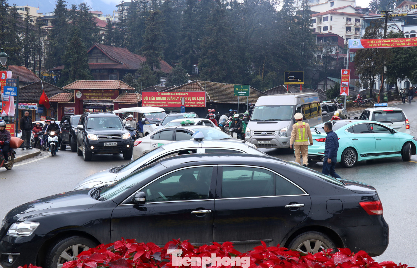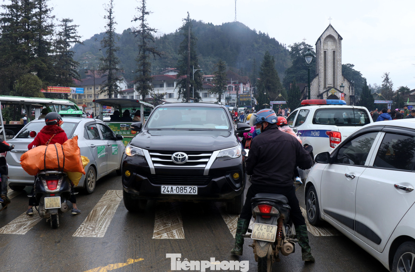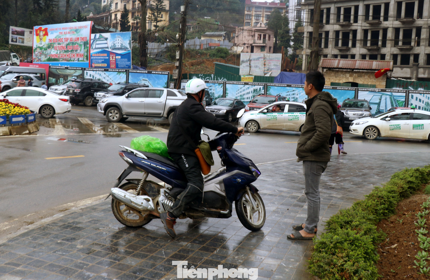 Ghi nhận thực tế của phóng viên, vào giờ cao điểm, tại các cung đường Fansipan, đường Cầu Mây, đường Thạch Sơn, khu vực trước cổng nhà thờ đá, giao thông trong tình trạng ùn tắc nghiêm trọng. Việc quá đông phương tiện dừng, đỗ trên vỉa hè, lòng đường khiến phần đường dành cho du khách đi bộ bị chiếm hết.