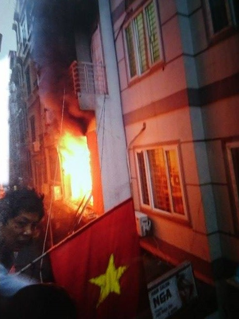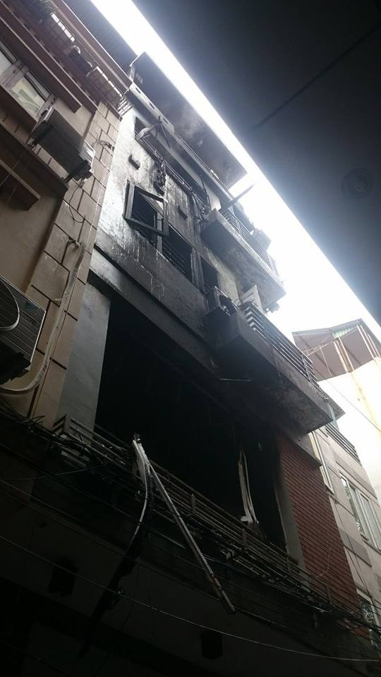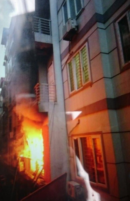 Người dân cho biết: "Ngọn lửa bùng phát từ tầng 2 của ngôi nhà, thiêu rụi khung nhôm cửa kính rồi phun ra ngoài lan lên các tầng trên".