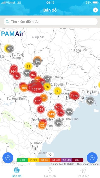 Tại thủ đô Hà Nội, ô nhiễm nghiêm trọng tiếp diễn ngày thứ ba. Ngay từ sáng sớm đến nay, tất cả hơn 40 điểm đo trong hệ thống quan trắc PAMAir ở các quận Hoàn Kiếm, Đống Đa, Thanh Xuân, Hai Bà Trưng, Cầu Giấy, Nam Từ Liêm, Bắc Từ Liêm, Hà Đông…đều ở mức ô nhiễm nghiêm trọng, dao động với chỉ số AQI từ 150-180.