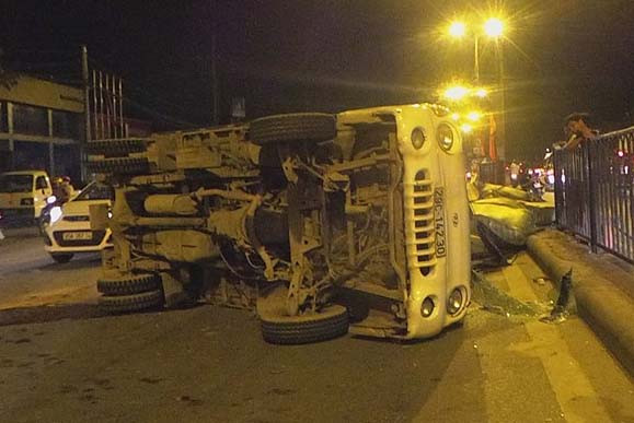Vào thời điểm trên, chiếc xe tải loại 1,65 tấn biển kiểm soát 29C-142.30 đang lưu thông trên đường Ngọc Hồi về Giải Phóng khi đến khu vực trên bất ngờ đâm vào hàng rào sắt phân cách giữa đường rồi lật nghiêng.