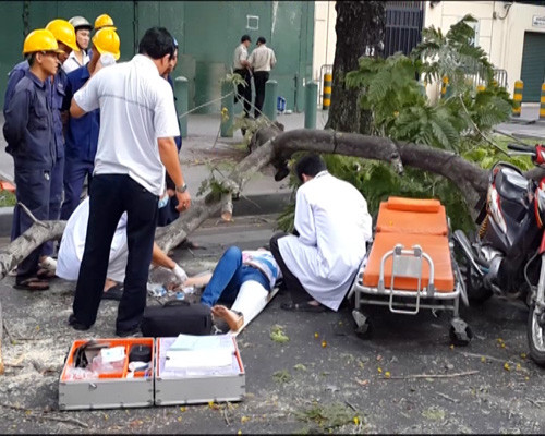Bị nhánh cây dài khoảng 15 m, đường kính ước 30 cm đè trực diện, Thủy bị thương nặng, xe máy bị hư hỏng. Cô gái còn lại bị nhẹ hơn với vết thương ở bàn tay. Hơn 15 phút sau, xe cứu thương đã đến và nhân viên y tế sơ cứu, đưa 2 nạn nhân tới bệnh viện.