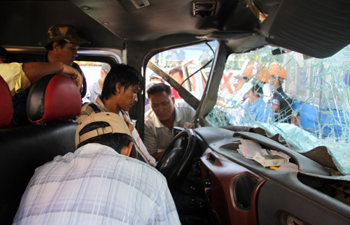 Sáng 21/7, Lê Văn Lành (33 tuổi) lái ôtô trên đường 23 Tháng 10, TP Nha Trang, hướng từ Diên Khánh về Trần Phú, bất ngờ tông vào đuôi xe tải chạy trước. Cú đâm mạnh làm đầu ôtô ghim vào đuôi xe tải, biến dạng. Tài xế Lành bị kẹt cứng bên trong, gần chục hành khách hoảng loạn.