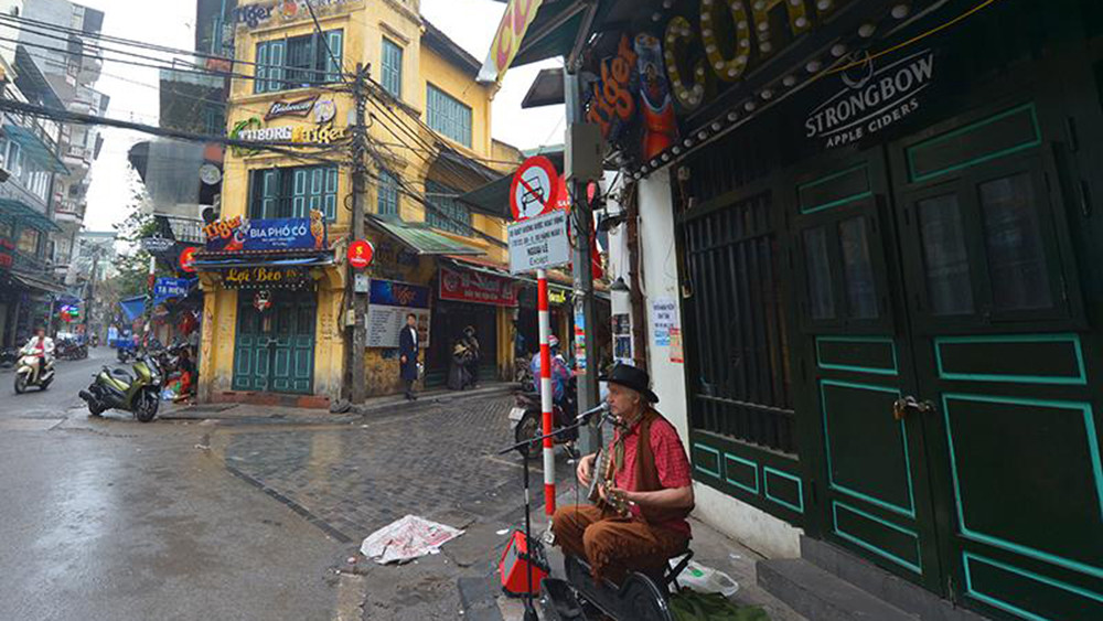 "Phố Tây" Tạ Hiện với gần 100% hàng quán nay đóng cửa gần hết khiến một số khách du lịch nước ngoài ngơ ngác.