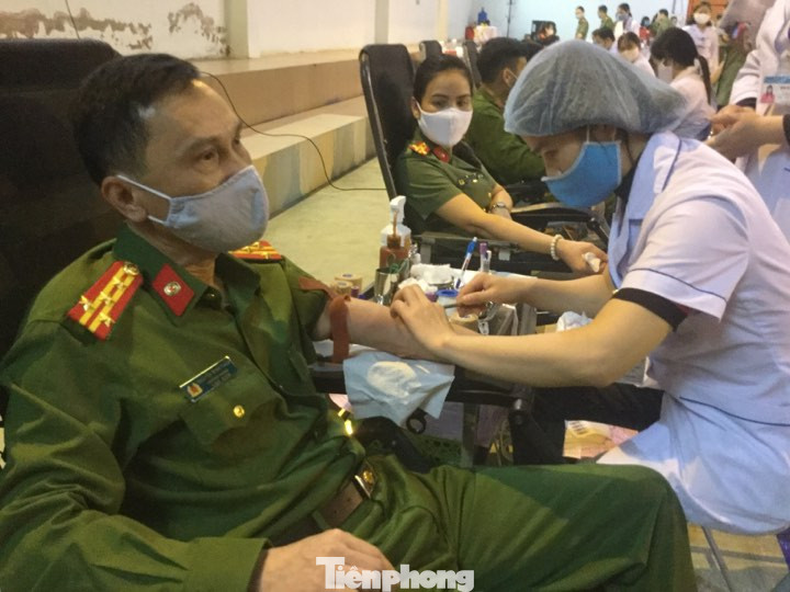Đại tá Triệu Tuấn Hải, Phó giám đốc Công an tỉnh Lạng Sơn tham gia hiến máu. Ảnh: Duy Chiến