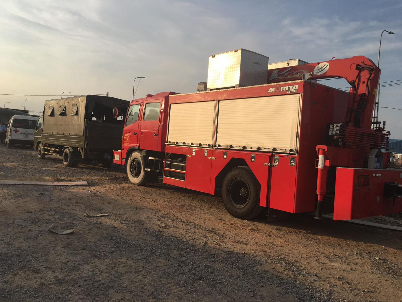 Các xe chuyên dụng được điều tới hiện trường để cứu hộ, cứu nạn