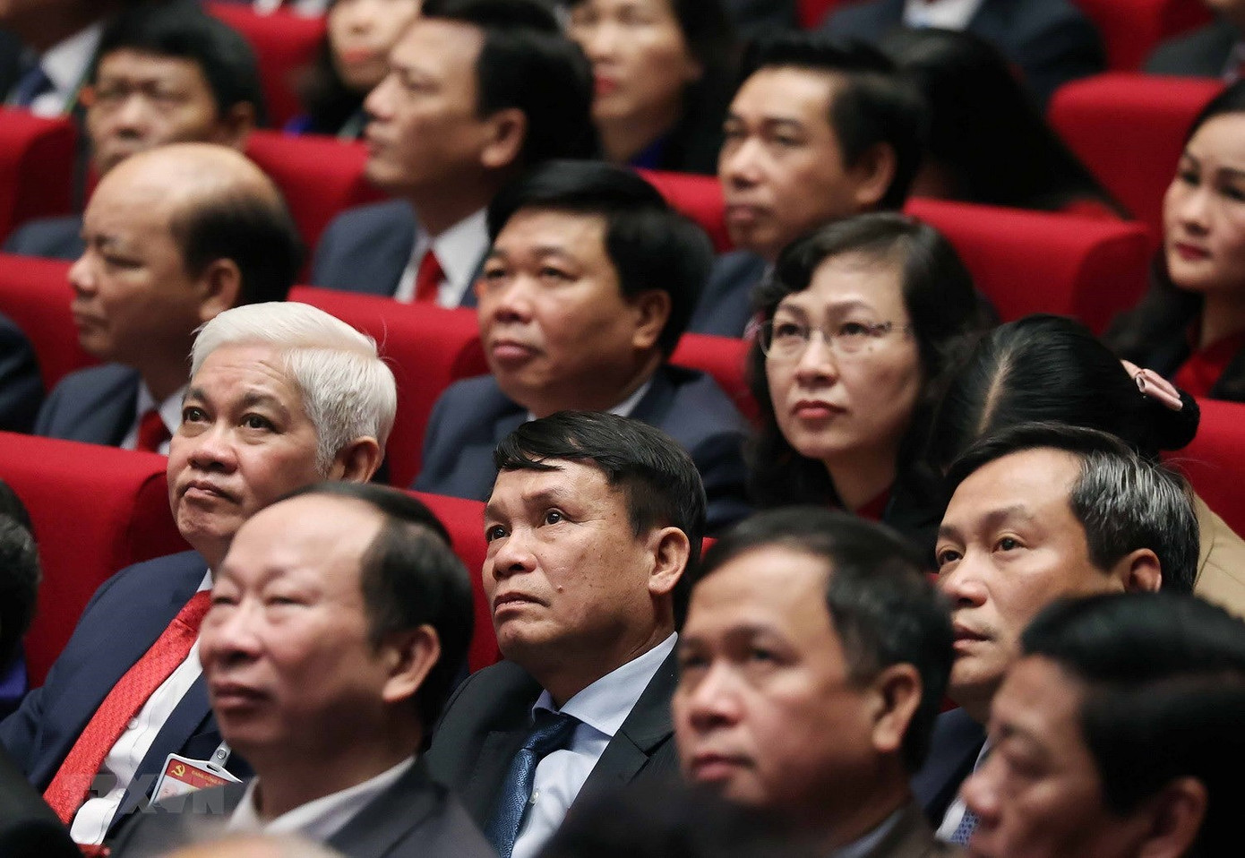 Các lãnh đạo, nguyên lãnh đạo Đảng, Nhà nước và đại biểu dự phiên khai mạc Đại hội. (Ảnh: TTXVN)