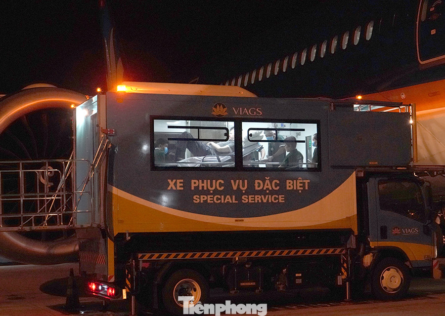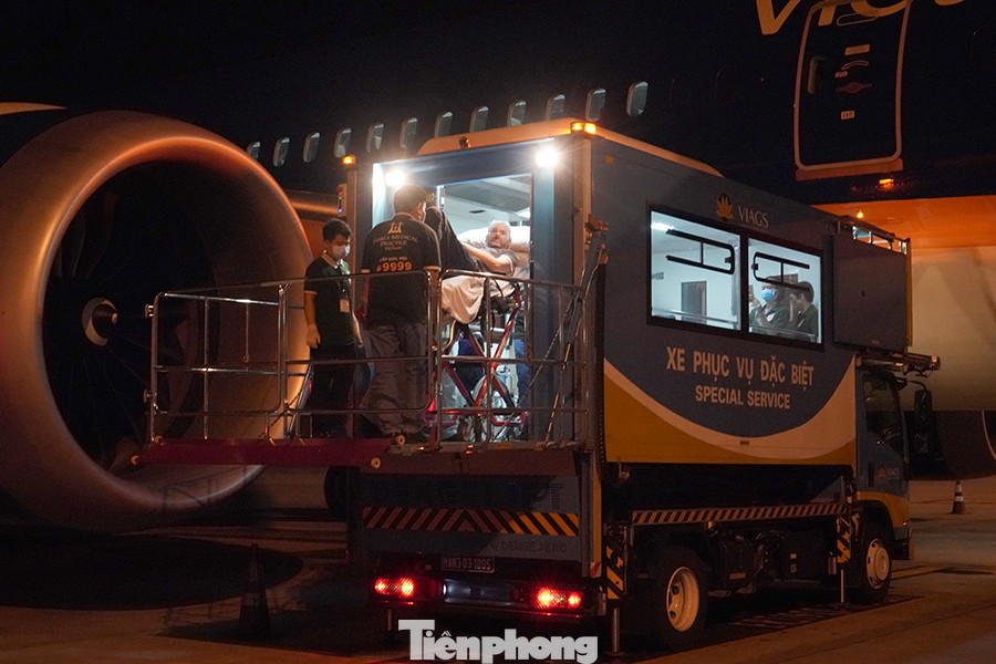 Phi công người Anh được chuyển từ xe y tế sang xe phục vụ đặc biệt tại Nội Bài.