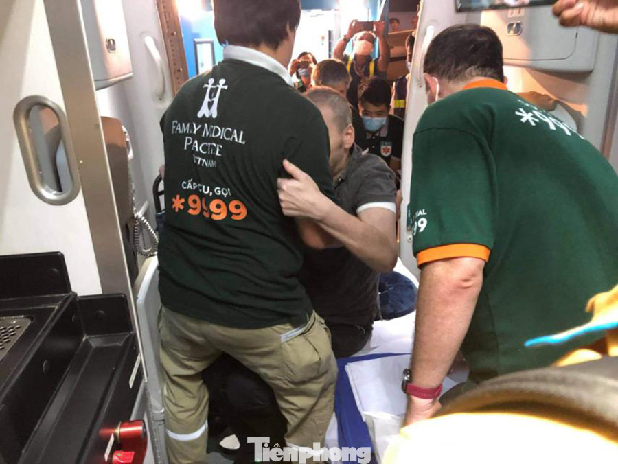 Sau khi xuống chuyến bay từ TPHCM ra, nam phi công người Anh được xe y tế chuyên dụng chở sang chuyến bay chuẩn bị khởi hành tới châu Âu.