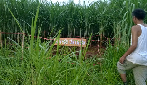 Theo ông Huy, hôm 24/5, một nông dân ra thăm đồng bất ngờ phát hiện ở khu bãi trồng cỏ sát ruộng mía của gia đình hàng xóm có một "hố tử thần" sụt lún rất sâu. “Tôi đang đứng ở bờ sông thì thấy đất lở rơi rạt rạt. Nhiều vạt cỏ, đất đá và cả cây mía bị hố lở nuốt xuống lòng đất”, anh Nguyễn Văn Hoan, người đầu tiên phát hiện sự việc cho hay.