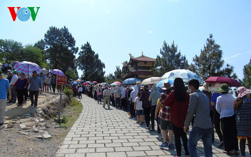 Ngày 30/4, tại Vũng Chùa - Đảo Yến, thuộc xã Quảng Đông, huyện Quảng Trạch, tỉnh Quảng Bình, hàng ngàn người nối nhau xếp thành hàng dài chờ đến lượt để dâng hương, dâng hoa lên mộ Đại tướng Võ Nguyên Giáp.