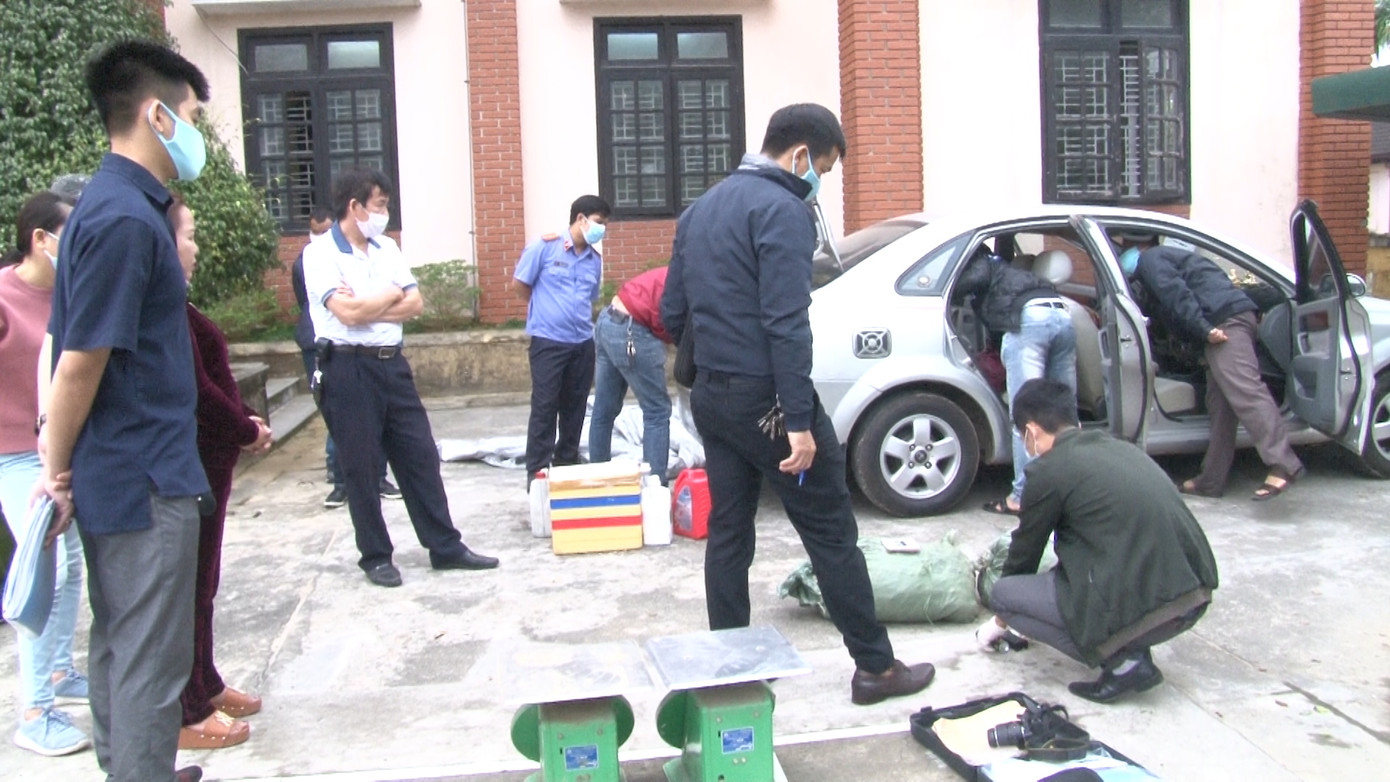 Quá trình kiểm tra, Tổ công tác phát hiện trên xe 43A 260.33 có 2 bao tải chứa chất nghi là thuốc nổ có trọng lượng là 74kg.