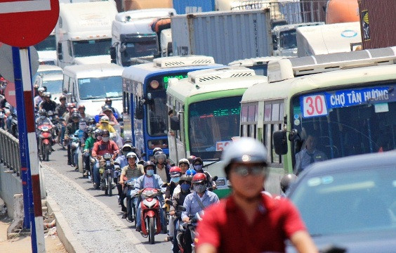 Tình trạng này cũng khiến hàng trăm phương tiện dồn ứ trên cầu vượt nút giaothông Cát Lái. Trước nguy cơ xe cộ chở hàng nặng, kẹt cứng trên cầu sẽ làm ảnhhưởng đến kết cấu của cầu nên lực lượng chức năng đã chặn đầu cầu không cho xelên.