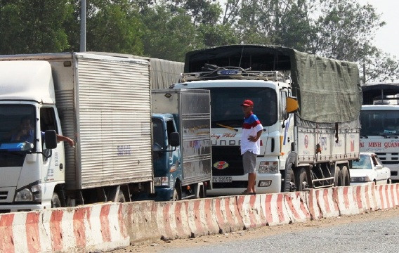 Theo quan sát của PV, trên đường xa lộ Hà Nội – Mai Chí Thọ - Đồng Văn Cống –Nguyễn Thị Định giao thông kẹt cứng, kéo dài khoảng 10km. Xe cộ nhích từng métđể chờ được vào cảng nhưng có chỗ không thể di chuyển được. Kẹt xe khiến nhiềutài xế ngán ngầm phải rời cabin xuống đường.