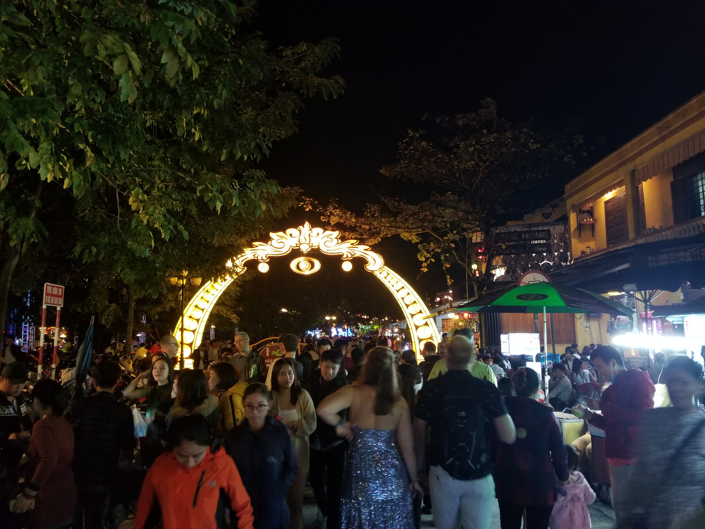 Các hàng quán trong phố cổ tấp nập khách Tây tụ nhập ăn uống, hát hò để tạm biệt năm cũ. Các cửa hàng đều mở cửa xuyên đêm trong dịp này để phục vụ du khách.