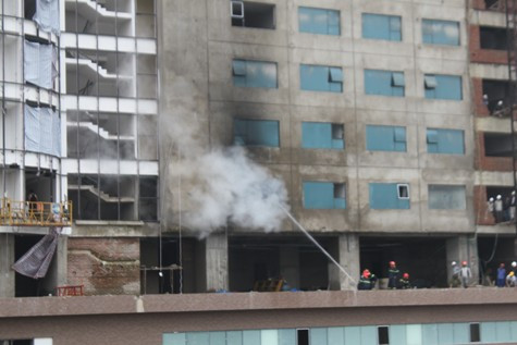 Ngọn lửa bắt đầu từ một phòng kho của tầng 6 tòa nhà. Do trong kho chứa nhiều vật liệu dễ cháy nên ngọn lửa nhanh chóng bùng lên và bao trùm kho đồ. Hàng trăm công nhân đang làm việc hốt hoảng bỏ chạy để thoát thân. Nhận được tin báo, lực lượng PCCC TP Vinh đã điều gần chục xe cứu hỏa đến hiện trường để dập tắt đám cháy.