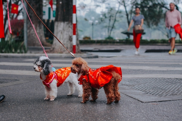 Những con chó nhỏ xinh cũng được đưa xuống phố.