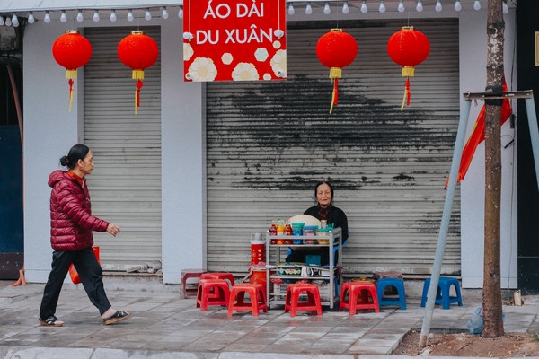 Khu vực phố cổ vắng vẻ, một số người bắt đầu đi chúc Tết.