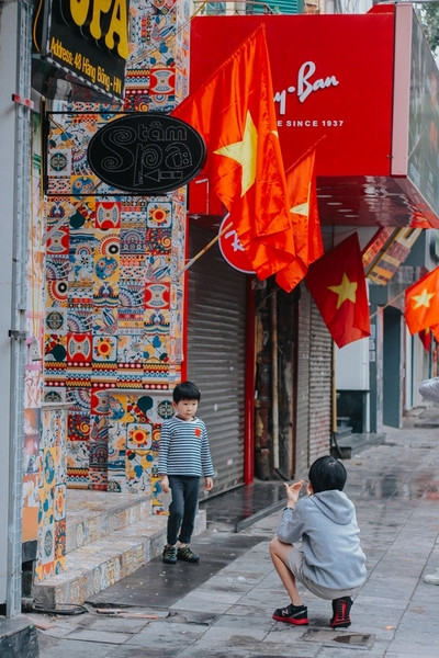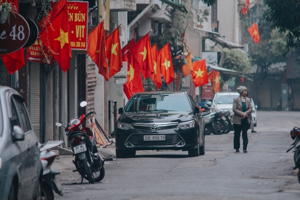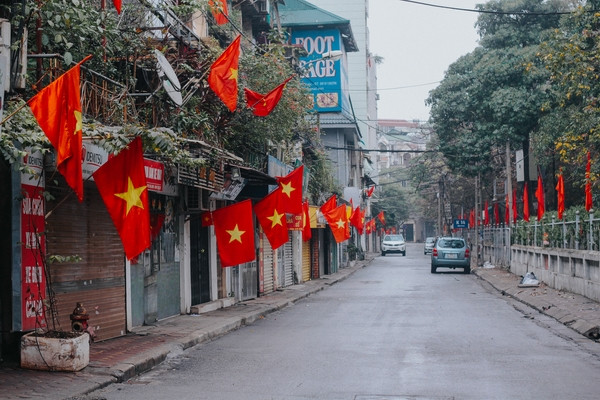 Tràn ngập sắc cờ đỏ sao vàng khắp các con ngõ ở Thủ đô