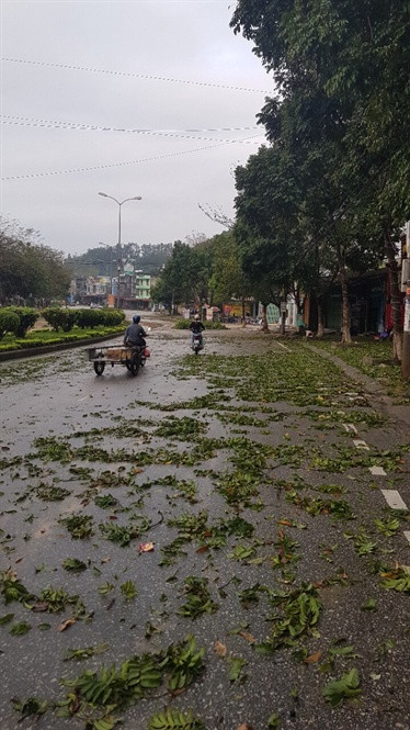Mưa đá làm nhiều cây cối bên đường phố bị đánh tả tơi. Hiện chưa có thông tin thiệt hại về người..
