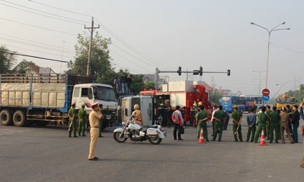Nhận được tin báo, lực lượng CSGT có mặt tại hiện trường giải quyết vụ việc.