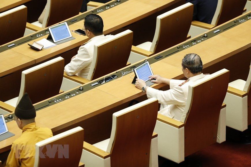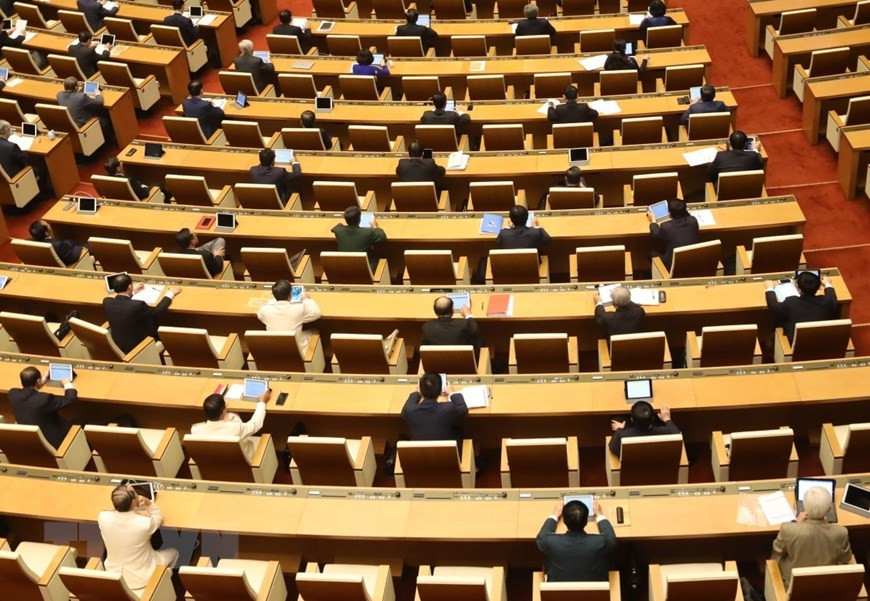 Các đại biểu Quốc hội tại phiên khai mạc Kỳ họp thứ chín, Quốc hội khóa XIV. (Ảnh: TTXVN)