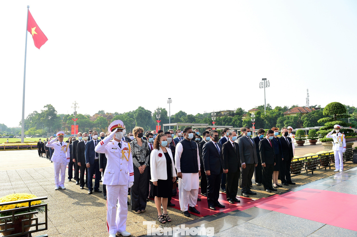 Với lòng biết ơn vô hạn, Đoàn đại biểu đã thành kính tưởng nhớ công lao to lớn của Chủ tịch Hồ Chí Minh, lãnh tụ vĩ đại, Người thầy kính yêu của Đảng và dân tộc ta. Người đã hy sinh cả cuộc đời cho sự nghiệp đấu tranh giải phóng dân tộc, thống nhất đất nước, xây dựng Tổ quốc Việt Nam độc lập, thống nhất.