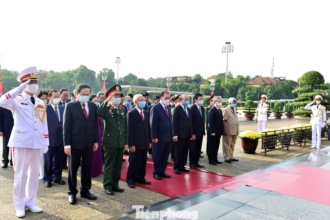 Vào lăng viếng Bác có các đồng chí: Thủ tướng Chính phủ Nguyễn Xuân Phúc; nguyên Tổng Bí thư Nông Đức Mạnh, nguyên Chủ tịch nước Trương Tấn Sang; Phó Chủ tịch nước Đặng Thị Ngọc Thịnh; nguyên Chủ tịch Quốc hội Nguyễn Văn An; nguyên Chủ tịch Quốc hội Nguyễn Sinh Hùng; Thường trực Ban Bí thư Trần Quốc Vượng; Chủ tịch Ủy ban Trung ương Mặt trận Tổ quốc Việt Nam Trần Thanh Mẫn.