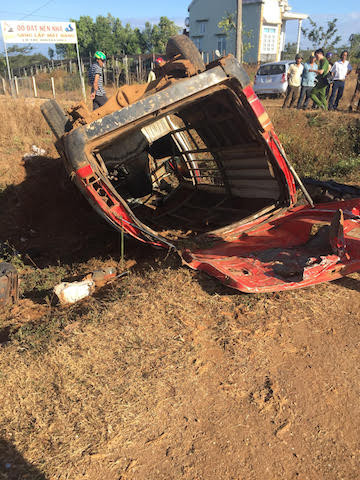 Đến đoạn quốc lộ qua thôn 1, xã Thanh An, xe của anh Nam mất lái rồi lật ngửa xuống vệ đường sau khi tránh xe máy mang BKS 77M1 – 6568 của chị Nguyễn Thị Liễu (thôn 1, xã Thăng Hưng.