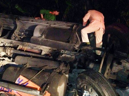 Do chiếc xe đầu kéo bị lật nghiêng, không thể đưa các nạn nhân ra ngoài nên lực lượng chức năng phải đục một lỗ ở thân xe.