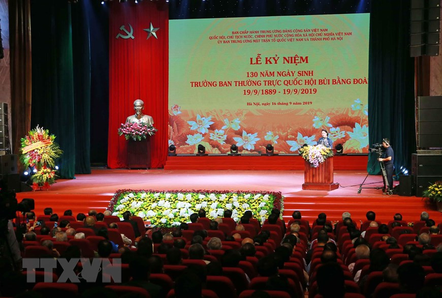 Trong diễn văn do Chủ tịch Quốc hội Nguyễn Thị Kim Ngân trình bày tại Lễ kỷ niệm, đã ôn lại những công lao, cống hiến, nhất là tấm gương thanh liêm, đức độ của cụ Bùi Bằng Đoàn. (Ảnh: Như Ý)