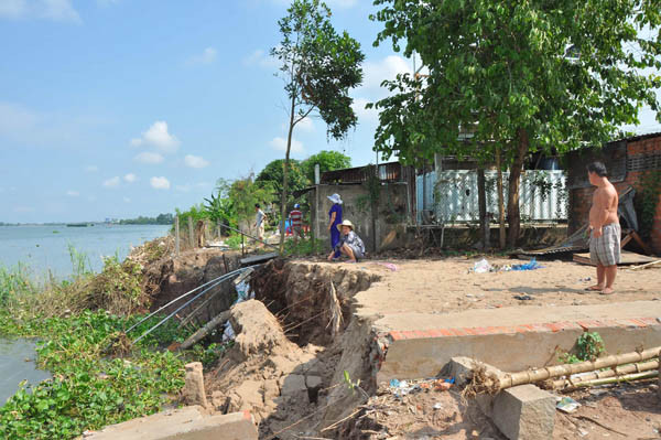 Trước đó, vào các ngày 3 – 4 và 7/4 tại khu vực này (ấp Bình Hòa) đã xảy ra sạt lở đoạn dài 250 m, sâu vào trong 25 m.