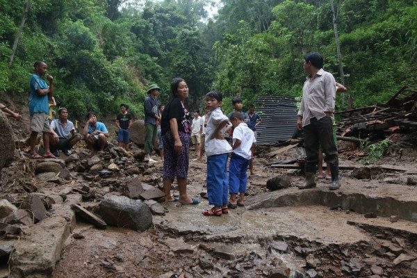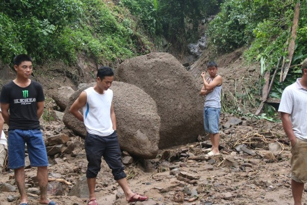 Hình ảnh của lũ quét sập nhà, trôi xe và những khối đất đá đổ xuống đường: