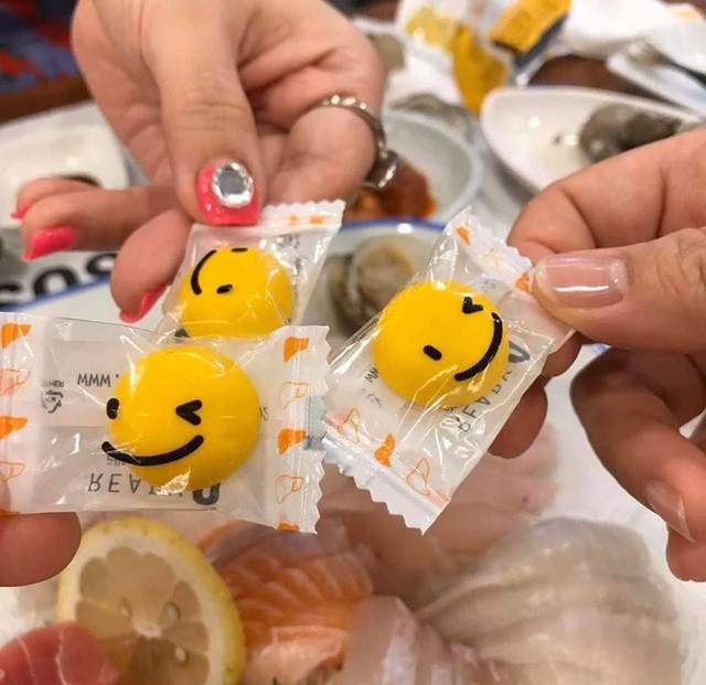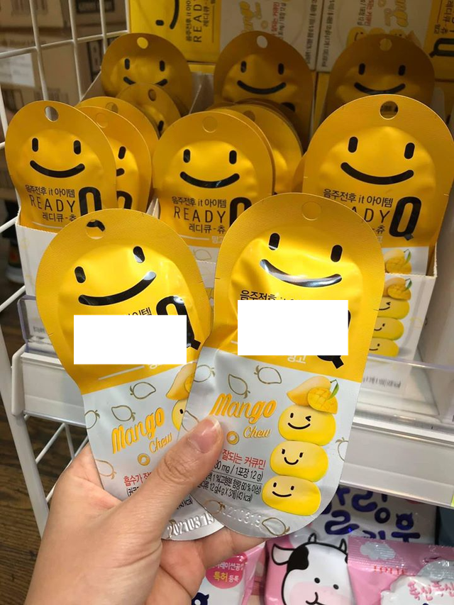 Chị Quỳnh giải thích, đây là kẹo mà người Hàn Quốc hay sử dụng trong các buổi nhậu. Nó là dạng kẹo dẻo có vị xoài và thường được đóng gói 3 viên trong 1 túi. Một túi vừa đủ để sử dụng trong một buổi nhậu.