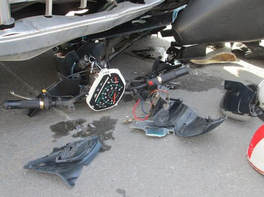 Cú tông mạnh khiến nạn nhân bị kéo lê hàng chục mét trên đường, trọng thương được người dân đưa đi bệnh viện cấp cứu trong tình trạng nguy kịch. Chiếc xe máy găm chặt dưới đầu xe khách bể nát, biến dạng phần đầu. Mũ bảo hiểm, giày dép, vương vãi trên đường.