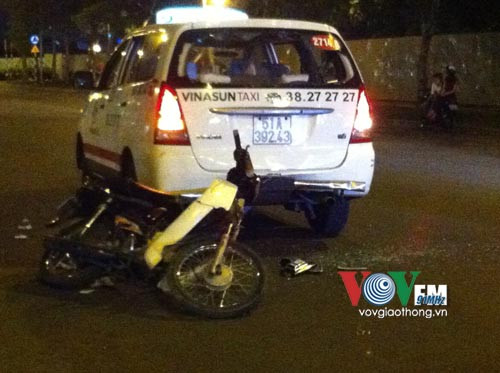 Khoảng 20h20 ngày 28/2, xe máy biển số 51S7 – 1430 do một nam thanh niên điều khiển chạy trên đường D2 hướng từ đường Bờ Bao Tân Thắng ra đường N1. Đến trước Siêu thị AEON phường Sơn Kỳ, quận Tân Phú, Tp.HCM, chiếc xe này va chạm với xe taxi biển số 51A – 392.43.