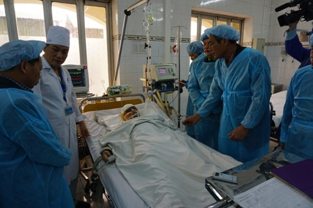 Bác sỹ Tiến cho hay, hiện tại bệnh nhân vẫn đang trong tình trạng hôn mê sâu, phải thở bằng máy, chứ chưa tự thở được. Mấy hôm nay, bệnh nhân vẫn đang sốt cao, toàn 39- 40 độ, khả năng là do bị nhiễm khuẩn từ mảnh đạn văng vào.