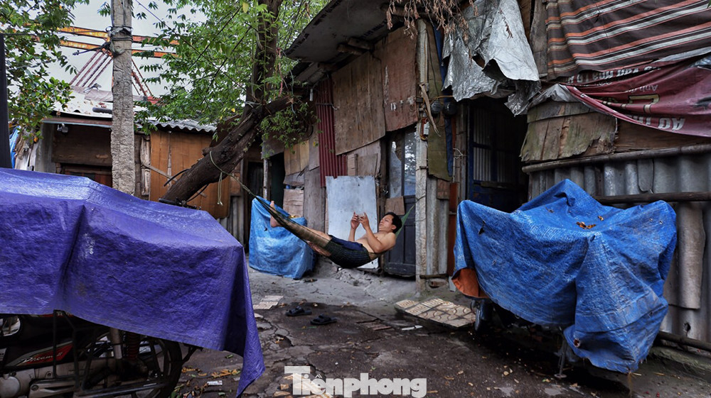 Trời quá nóng, mong muốn có giấc ngủ ngon sau một đêm lao động mệt nhoài cũng là điều xa xỉ ở xóm ngụ cư này.