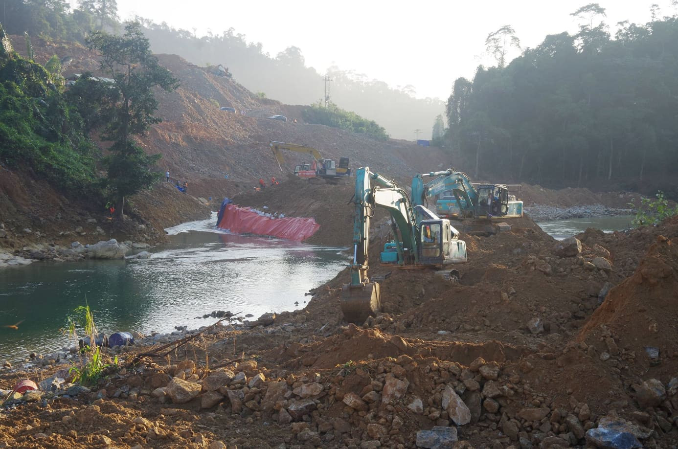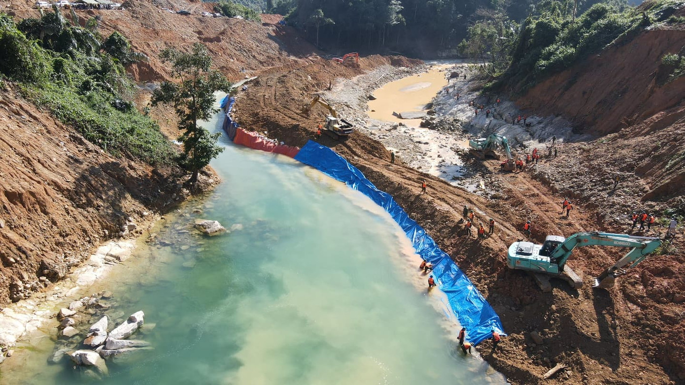 Sau hơn 2h chạy đua với thời gian và điều kiện thời tiết bất thường, với tinh thần trách nhiệm và quyết tâm cao, các lực lượng đã ngăn xong dòng và nắn tuyến sông Rào Trăng theo luồng mới để tìm kiếm các nạn nhân nghi bị vùi dưới lòng sông.
