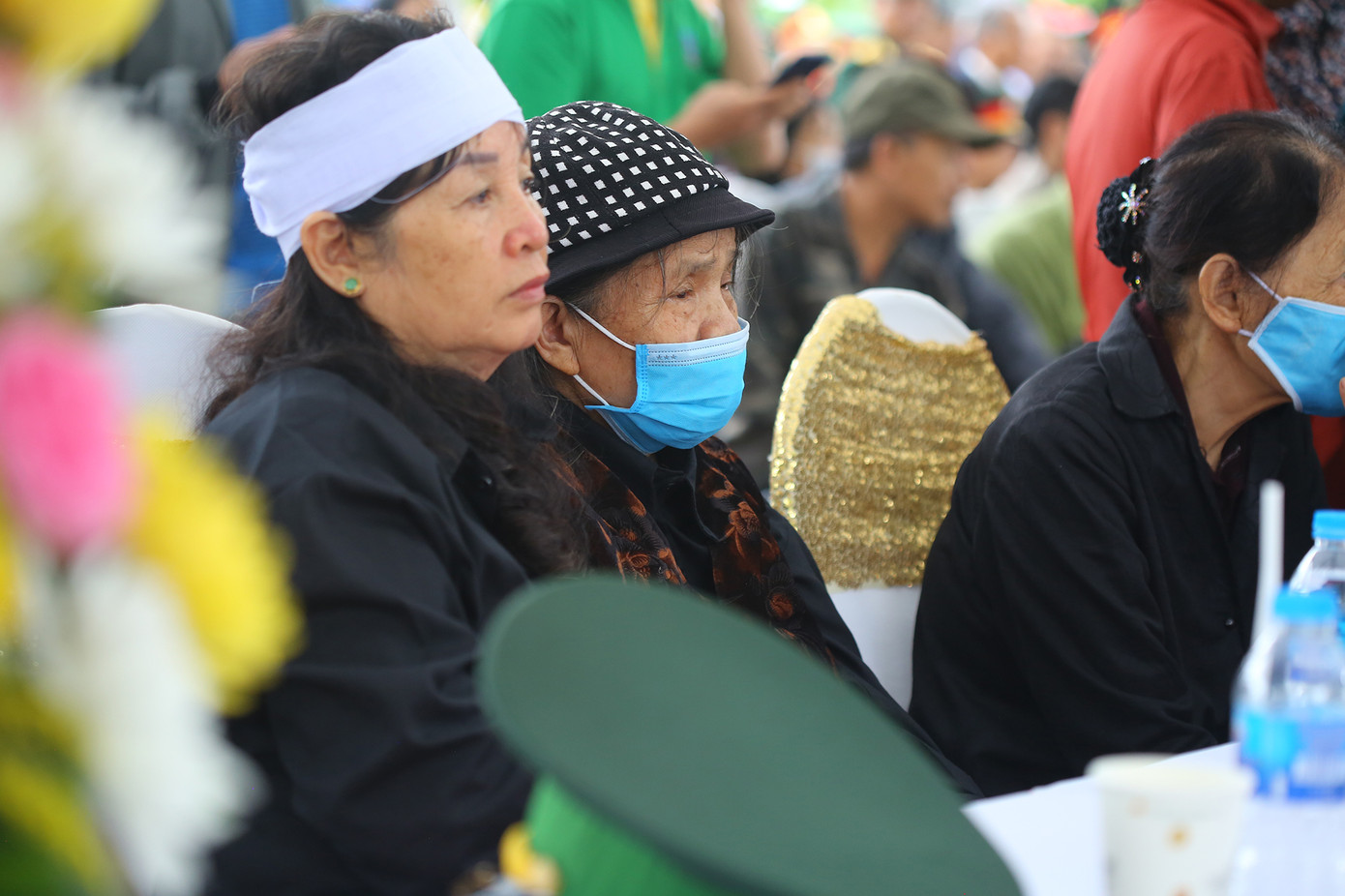 Có mặt trong lễ tang con trai, bà Hồ ngồi thẫn thờ ở hàng ghế đầu tiên đối diện với cổng nghĩa trang Liệt sĩ xã Sài Sơn (huyện Quốc Oai, Hà Nội), nơi dòng người khắp nơi đang ùn ùn kéo về để thắp nhang tiễn đưa vong linh Tướng Hùng. Hai người thân phải luôn túc trực bên cạnh để vỗ về bà Hồ mỗi khi có ai đó trong đám viếng bước ra và tiến đến nắm tay bà chia buồn. Đôi tay gầy guộc của người mẹ luôn run run khi đưa chiếc khăn mùi xoa lên thấm những giọt nước mắt len lén rơi nơi khóe mắt.
