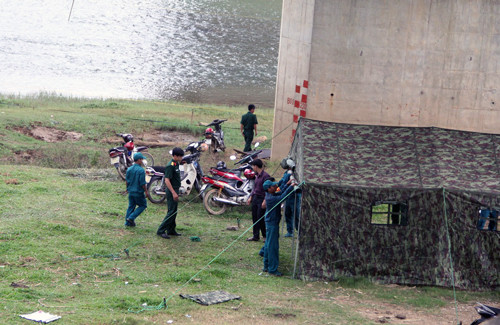 Cơ quan chức năng lập lán trại bảo vệ hiện trường. Ảnh:Hoài Thanh.