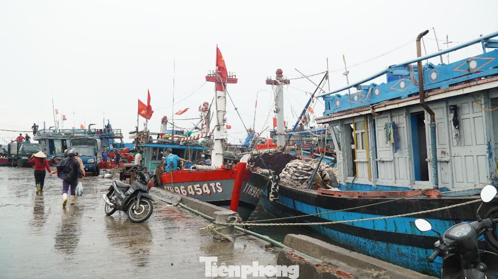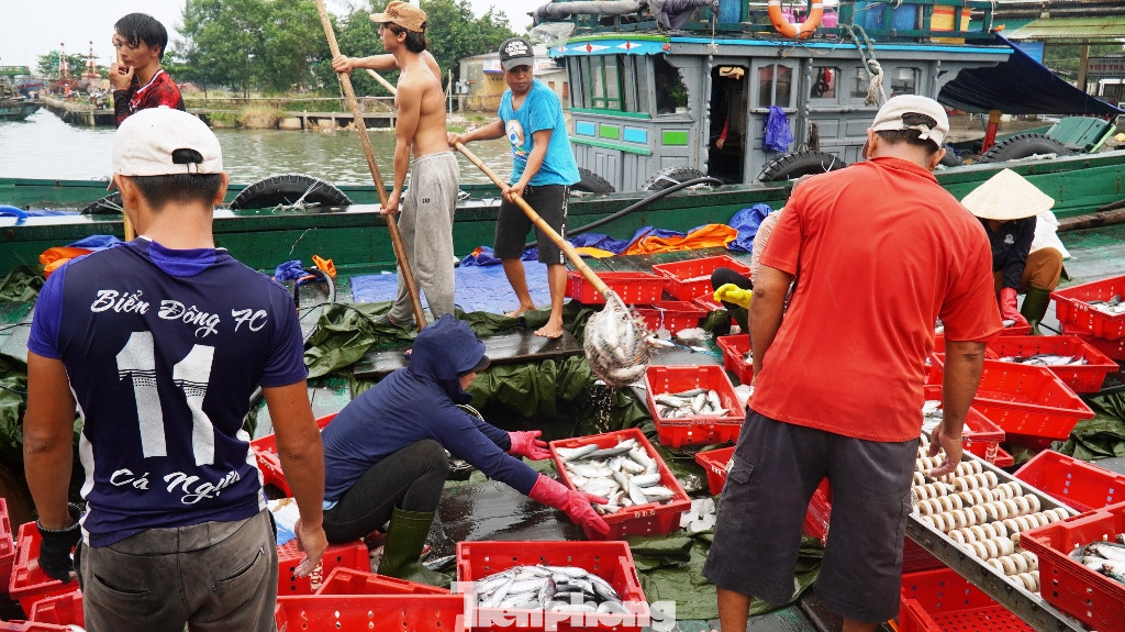 Trước thời điểm bão, hàng chục tàu cá của ngư dân các địa phương như Phú Thuận, Thuận An (huyện Phú Vang, TT-Huế) cập cảng cá Thuận An, mang theo những khoang đầy cá biển.