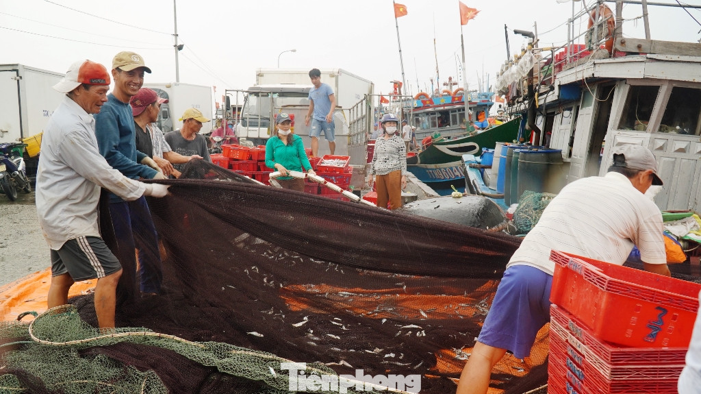 Nhiều thuyền cá khác trở về bờ cũng ăm ắp thủy, hải sản trong niềm phấn khởi của những ngư dân sau chuyến biển giữa mùa dịch COVID-19.