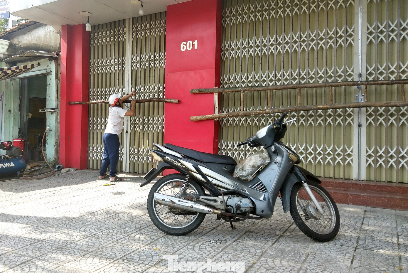 Một số cửa hàng trên đường Tôn Đức Thắng, Nguyễn Lương Bằng... đã đóng cửa hàng, chằng lại cửa nẻo bằng các thanh gỗ lớn để đề phòng bão đổ bộ.