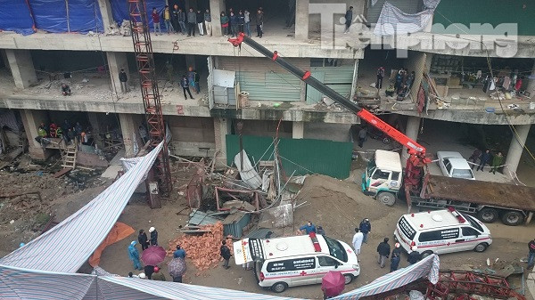 TPO - Lực lượng chức năng đã phải điều xe cần cẩu tới hiện trường để di dời đống đổ nát, đưa thi thể bị mắc kẹt của các nạn nhân ra ngoài.