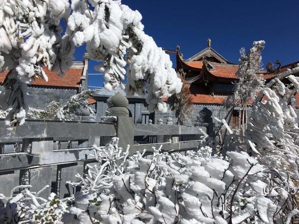 Nhiệt độ giảm sâu tới âm 6 độ C trong đợt không khí lạnh tăng cường, đỉnh Fansipan lai phủ trắng băng tuyết ngỡ như trời Âu.