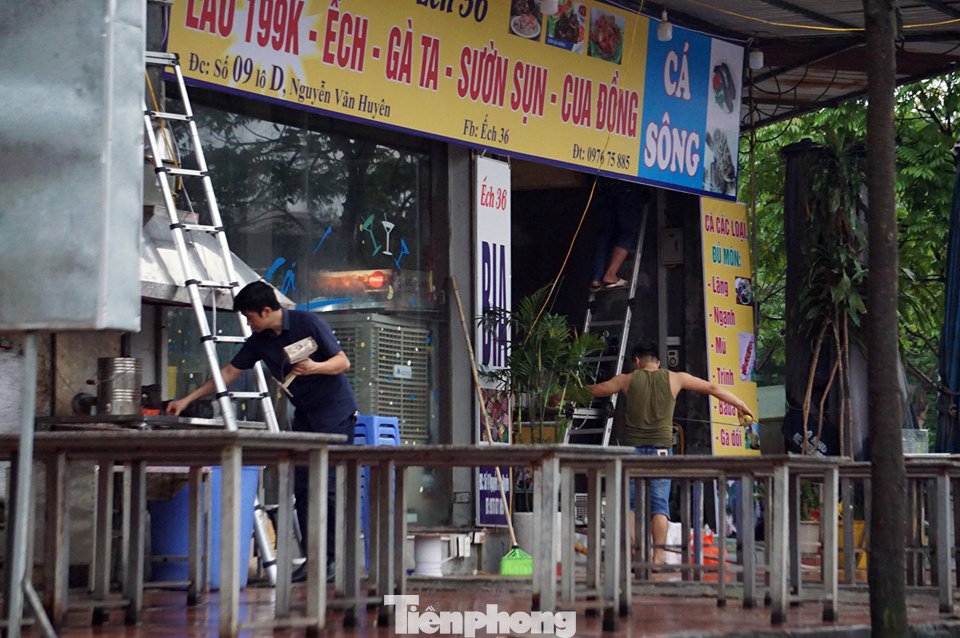 Ghi nhận trên tuyến đường Nguyễn Văn Huyên, nhiều chủ cơ sở kinh doanh ăn uống dọn dẹp bàn ghế, sửa sang hệ thống biển hiệu, camera sẵn sàng đón khách trở lại.